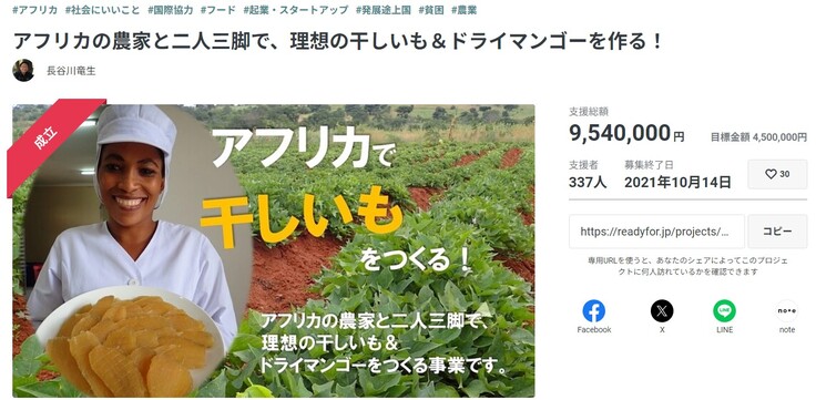 アフリカと干しいもを愛するファンの方々から、これほど私たちのプロジェクトに期待をいただけたことに驚いています。支援者様一人ひとりの温かい想いが私たちの原動力となり、夢を実現する大きな力となっています。