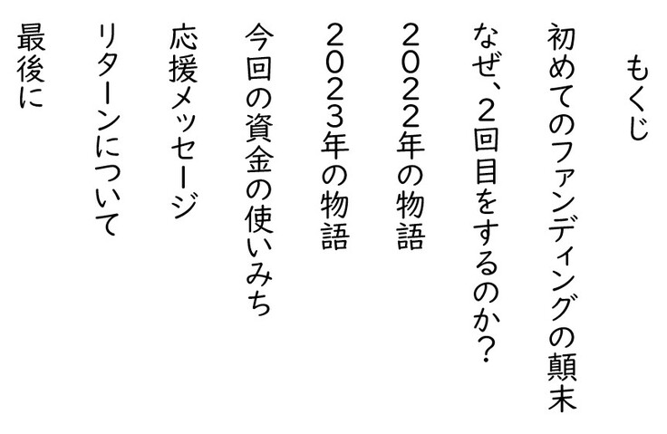 そう考えて今回、2回目のクラウドファンディングに挑戦することを決めました。