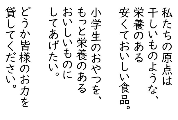 一方、私たちは食品工場として、自社製品を食べてみたいというご要望には、できるだけお応えしたい。だから干しいもやドライフルーツをご賞味頂くリターンもご用意しました。普段は日本に輸入しない、アフリカ市場向け商品もお楽しみください。