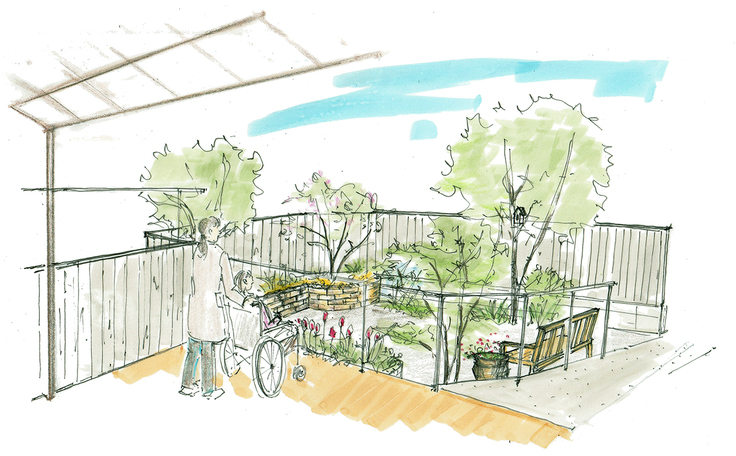 昨年、幸いにも隣の敷地が空き、土地を取得できたのですが、土地代とバリアフリーの工事費がかかってしまいました。木々を植えたり、花壇を作ったり、ベンチを置くための予算が足りなくなってしまいました。