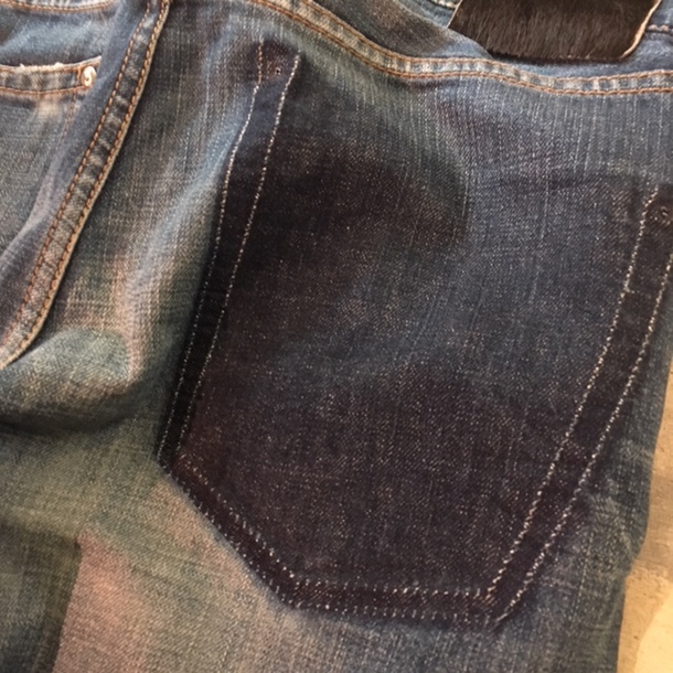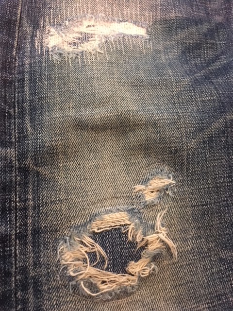 今回は穴が空いた部分のリペアに加えて、何かデニムの表情に変化が欲しいとのことでした!