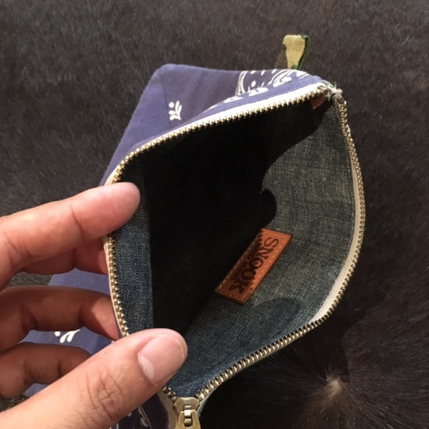 デニムの裏をペイズリーのヴィンテージのバンダナにしたポーチはとっても可愛いです!