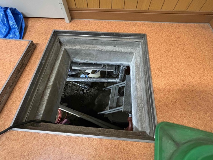 写真は床下の点検口から作業を進めている様子と、外部に設置された新しい青い配管。作業中は「大丈夫です!」と声をかけ合いながら、漏れがないか丁寧にチェックしていました🔍