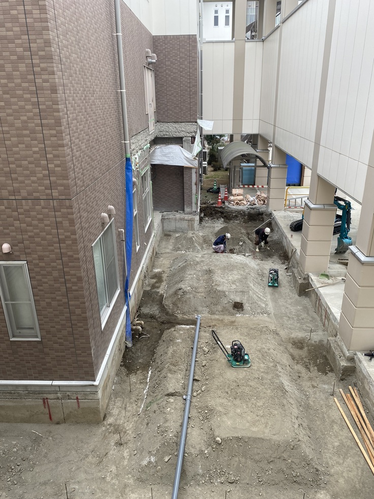 9月あたまに始まった工事ですが、まず既存の屋根部分と床の古いコンクリート部分を取りのぞいた後、ここ1週間ほどは、基礎の土木工事が行われていました。
