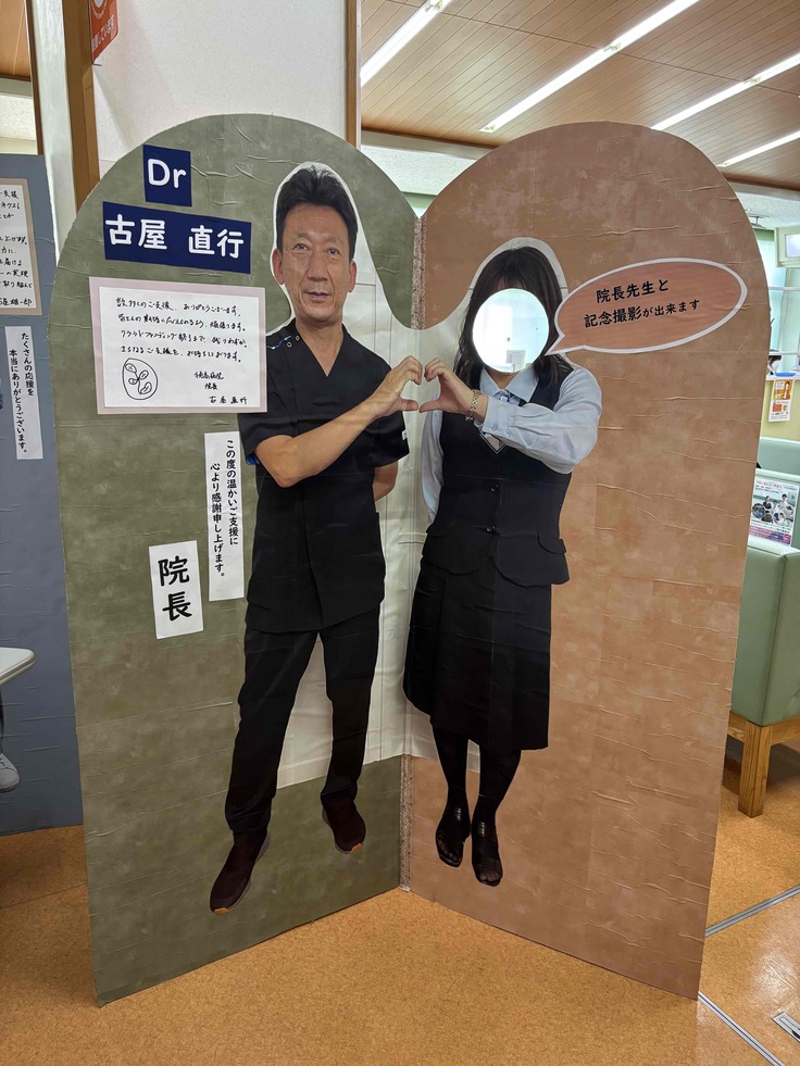 顔はめパネルでは、院長先生と一緒にハートポーズで記念撮影ができます💚
