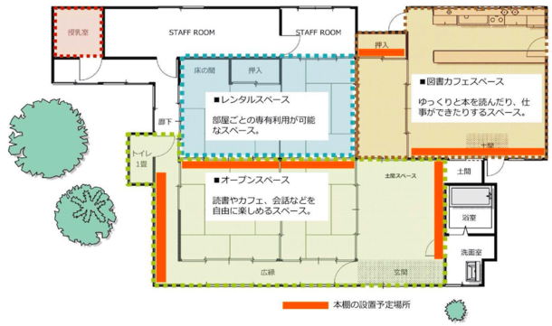▶︎読書やカフェ、会話などを自由に楽しめる空間にします。一角に子どもが遊べるスペースも完備したいと企画中です。