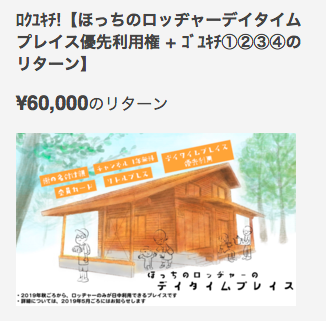 そこで、デイタイムプレイス、優先利用権利を含めた、ロクユキチ!【ほっちのロッヂャーデイタイムプレイス優先利用権 + ゴユキチ①②③④のリターン】