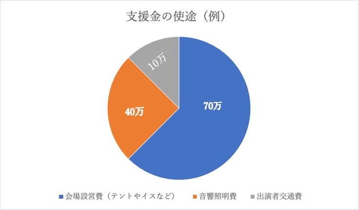 全体予算の約50%を占める補助金がなくなった事により、協賛金の確保を例年以上に頑張っておりますが、それだけでは予算に届かないことから、クラウドファンディングの目標金額を過去最高額の120万円としました。