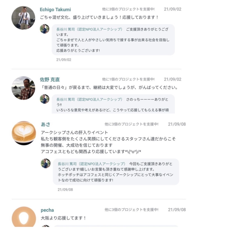 ▼みなさまから頂いた温かいコメントの一部です▼