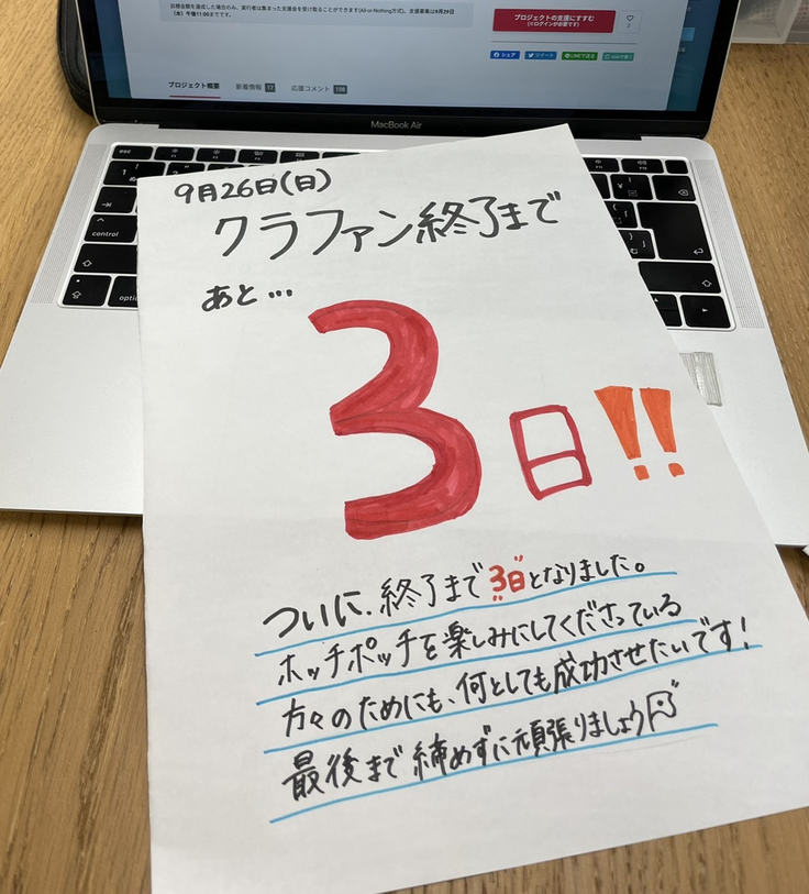 時には、思い通りにいかず、クラファンはこんなにも辛く・大変なものなのかと挫けそうになったこともありました。
