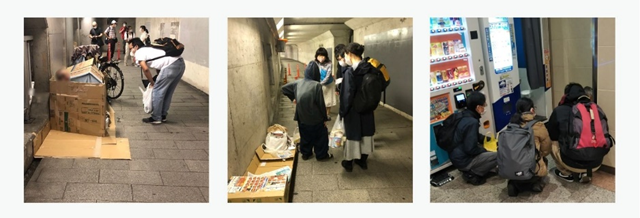 活動では毎回10~15名ほどのホームレス状態の方へお声掛けをしています。支援制度を案内し、路上生活から脱出する方もいらっしゃいますが、また次の機会に巡回すると新たに路上生活に陥ってしまった方が増えているという現状が続いています。