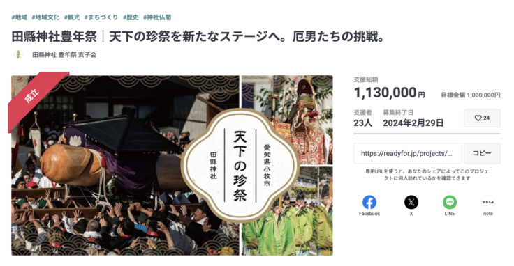 田縣神社豊年祭亥子会 | プロジェクト終了報告