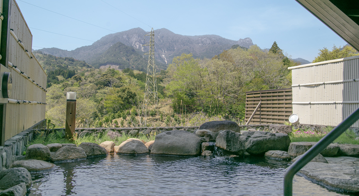祝子川温泉の露天風呂からは、名峰・大崩山(おおくえやま)を望むことができます。四季折々の自然に包まれながら、目の前に広がる山の景色を眺めてゆっくりと湯につかる時間は、ここならではの特別なひとときです。