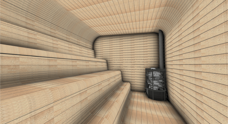 祝子川温泉の露天風呂からは、名峰・大崩山(おおくえやま)を望むことができます。四季建設予定のサウナは、木のぬくもりを感じられるロッジ風の外観と、やわらかな曲線が心地よい室内空間が特長。最大6名ほどが利用可能な広さで、ゆったりとしたベンチで深くととのえる設計です。熱源には、地域の支障木などを活用した薪ストーブを採用。祝子川の石を使ったロウリュにも対応予定で、セルフでアロマ水をかけることもでき、五感で自然を味わえる体験型サウナになる予定です。 サウナの外には、広々としたウッドデッキに天然水の水風呂を用意。目の前の大自然と一体化するようなととのい時間を過ごしていただけます。