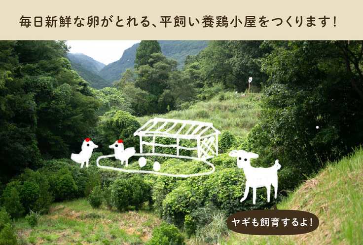 ①「温泉名物・地獄蒸し卵」のための養鶏小屋づくり