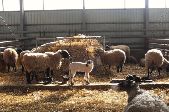 農場の方に簡単なあいさつをすると、早速羊が多くいる小屋に案内して下さいました。