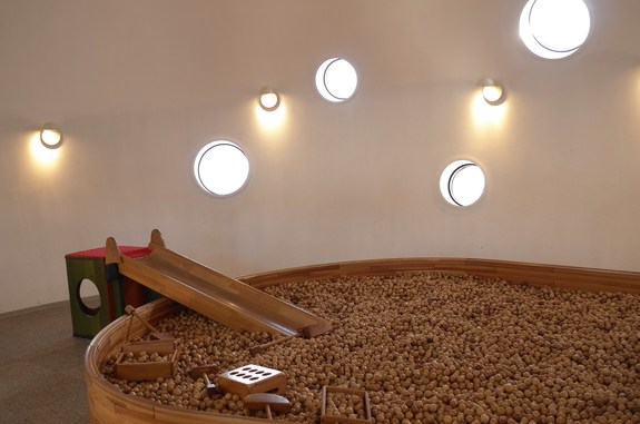 子供たちが遊べる遊具や、大人たちが読める一般書籍、喫茶店やアートギャラリースペースなどもある施設となっているので、ここでの子育てや読み聞かせをしている親子像をつい思い浮かべてしまいました。