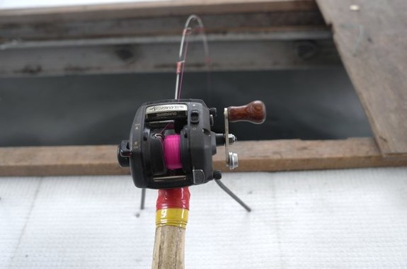 細い釣竿と細い糸。ワカサギ釣りといえば、一つの糸に3匹も4匹もかかった状態で釣れるイメージがあったのですが、思った以上に難しい…アレ? 釣れない。。