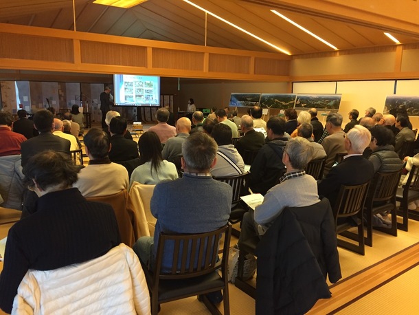 保津川のほとり、嵐山を一望する時雨殿からの眺めはまさに絶景!素晴らしい眺めの大広間でフォーラムが始まります。