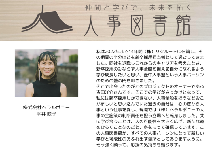 ㈱リクルートで人事・採用を経験されたのち、フリーランス人事として独立、現在は㈱ヘラルボニーのHRにて活躍されている平井咲子さんから応援を頂いております!