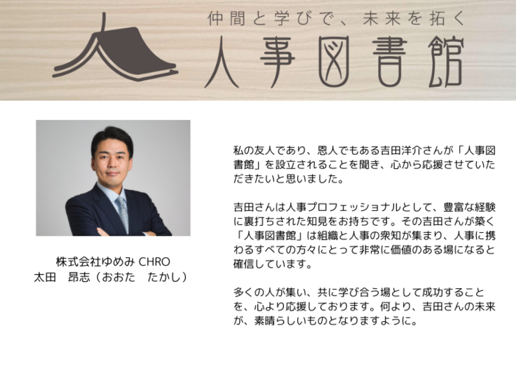 企業のDX推進・内製化支援を行う株式会社ゆめみのCHROを務めながら、経営・人事アドバイザーとして公的機関や急成長スタートアップに対する事業開発や組織変革の支援に取り組まれている太田昂志様より応援を頂いております!
