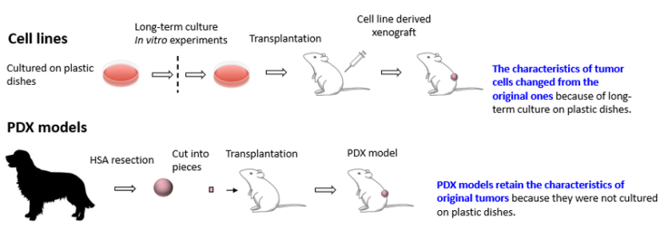 By evaluating the efficacy of drugs such as those used for human medicine or for other canine cancers by using the HSA PDX model, we can find drugs with high expectations for HSA treatment in dogs.