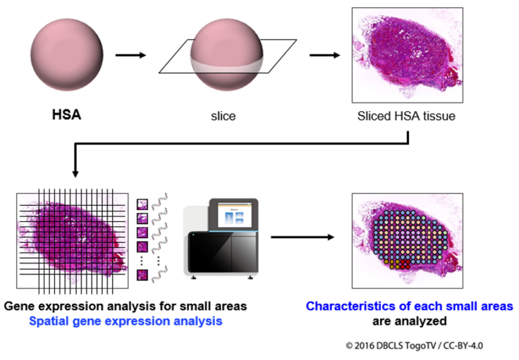 We can obtain information about where tumor cells are located within the tumor tissues and with which cells they coexist. This information allows us to correctly understand the characteristics and properties of HSA tumor cells.