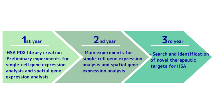 We are going to generate (1) patient-derived xenograft (PDX) model of HSA. Then, by using the PDX model, we will conduct (2) single-cell gene expression analysis to obtain the results that can lead us to novel therapeutics. Furthermore, we will perform (3) spatial gene expression analysis to unveil the pathogenesis of HSA in more detail.