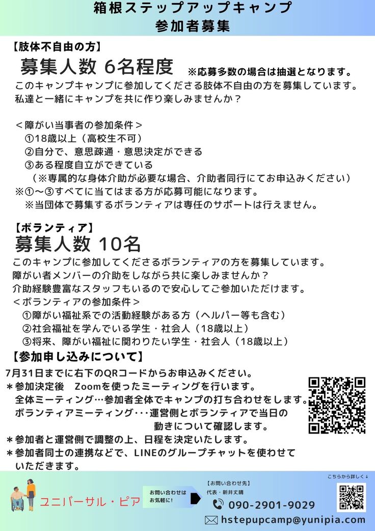 もう既に肢体不自由の方1名 ボランティアの方1名の参加申し込みをいただいています。