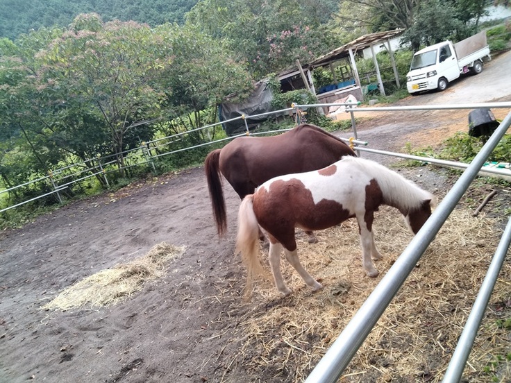 この日「朝飯前放牧」に出たマロンとパインちゃんは、