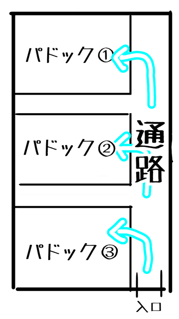 ⑥の牧柵を修繕して3つのパドックに区切ることができたら、