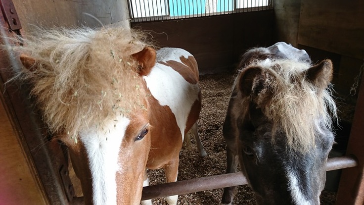 ココちゃんとパインちゃんはひとつの馬房で暮らしていて