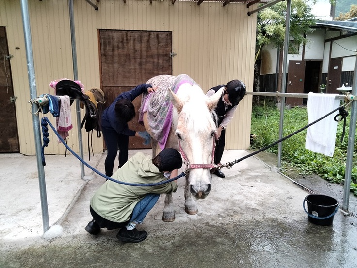 風邪をひかないように一生懸命濡れた馬体を拭いて乾かしてくださいました♡