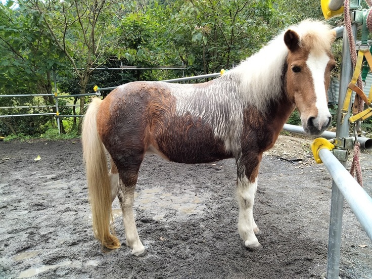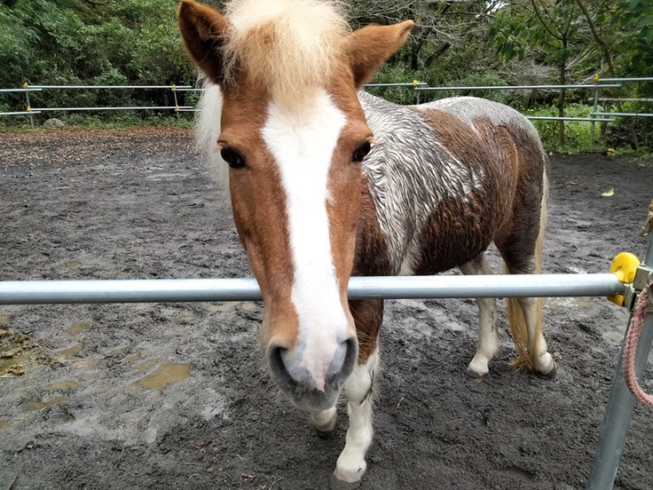 それでも砂地なので足を滑らせて怪我をする心配はないので、汚れるの覚悟でパインちゃんを放牧に出しました。