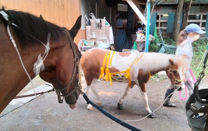 放牧に出してしまうと走り回ってまた痛めてしまう可能性があったからです。