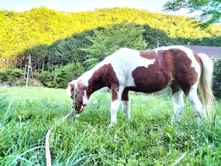 でもあるときは人と一緒にお散歩に行って美味しい青草をハミハミする時間。