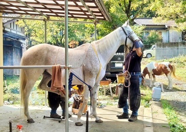優しくなだめていただき無事に装蹄を終えることができました(;'∀')