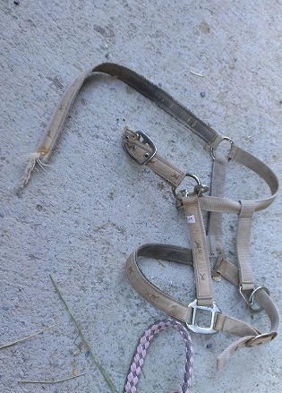 馬は無口(ホルター)というものを顔につけてリードロープで繋ぐのですが、
