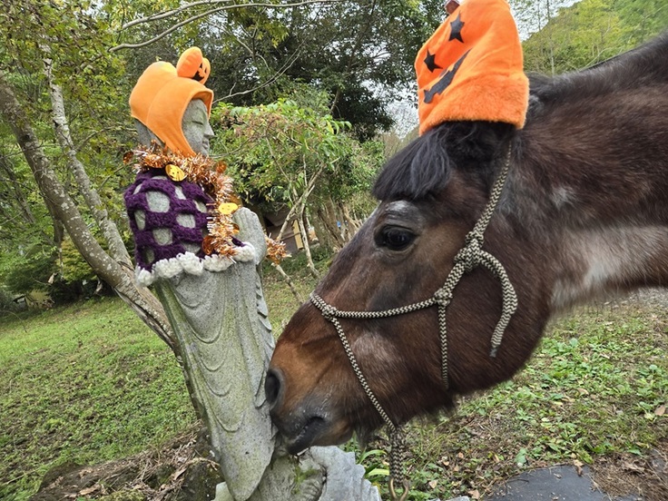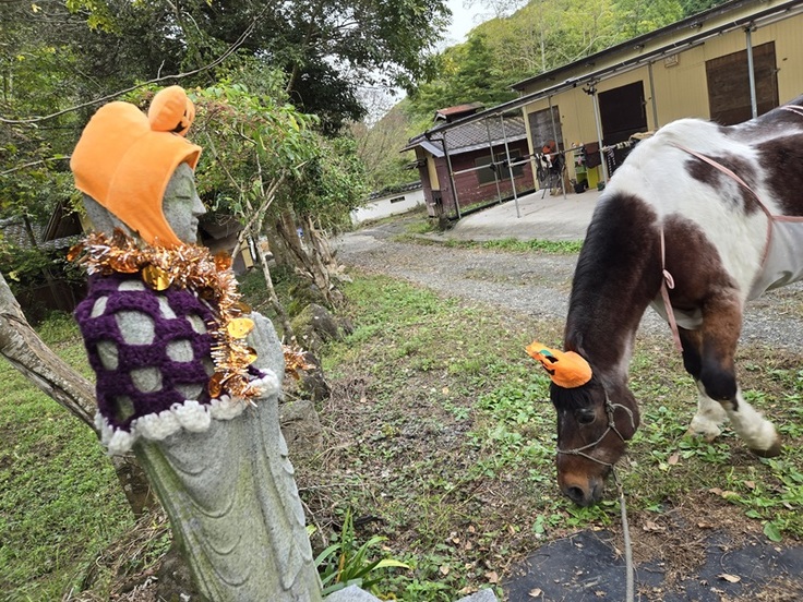 同じ仮装をしたお地蔵さまをスンスンしていました(笑)