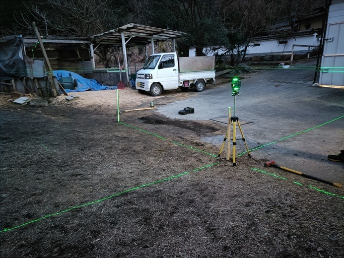 緑色の光線で直角を確認しながら