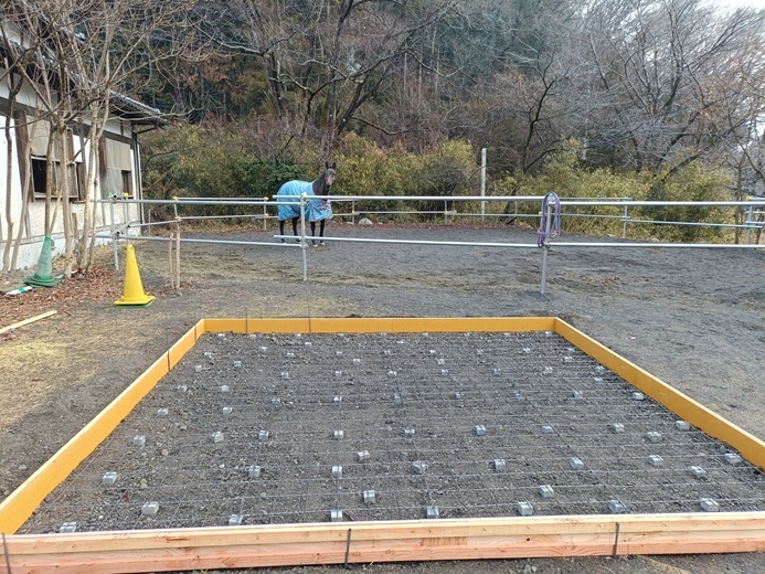 厩舎横の丸いパドックの前にあるエリアに建設しています。