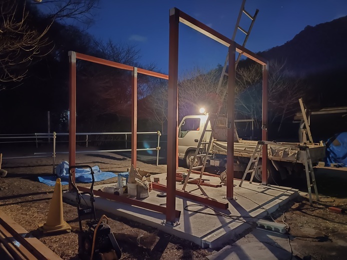 今度は支柱を立てる工程です。