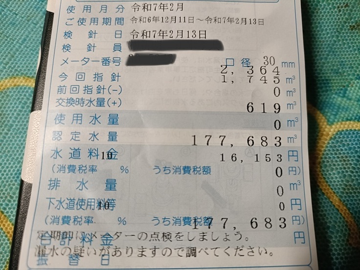 今回も、検針に来た職員さんが「漏水している可能性があるから早急に業者に来てもらってください」と。