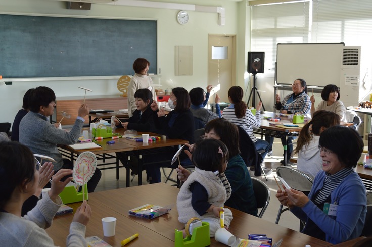 今期は小さなお子様も参加してくださり、木のおもちゃや、ママの手作りおもちゃに喜び、とてもかわいい笑顔を見せてくれました。