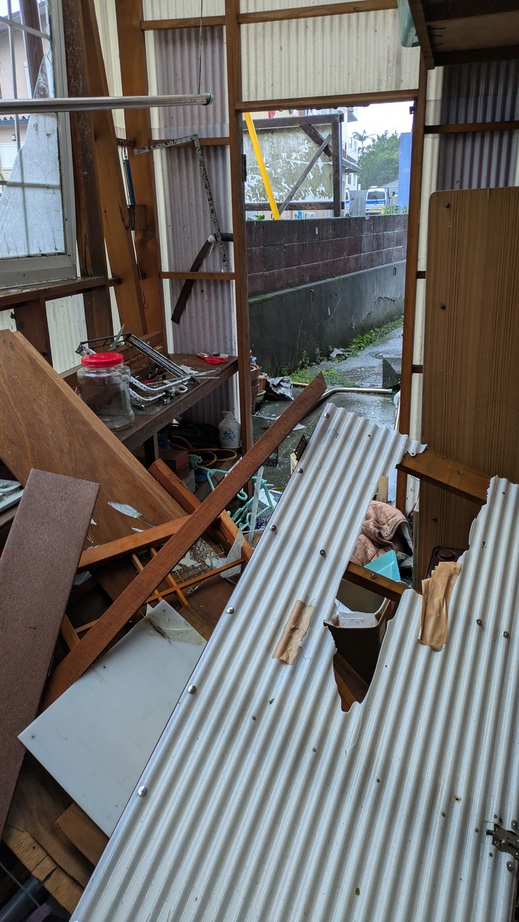 この度の台風22号の被災で自宅の物置は破壊されてしまい。