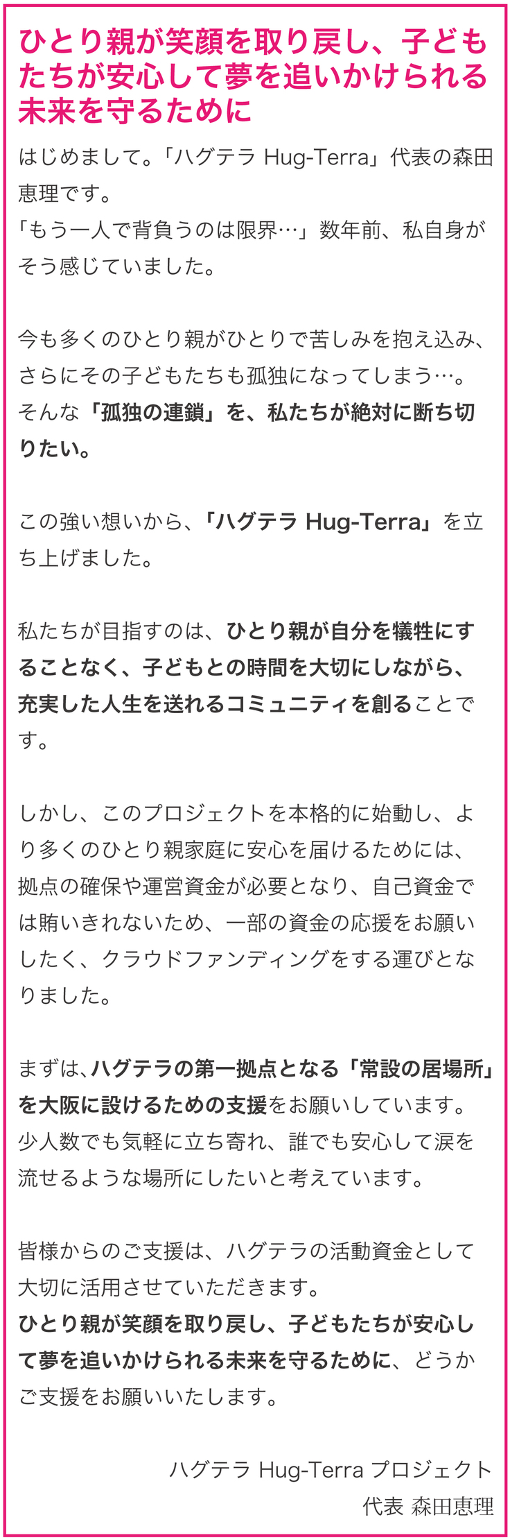 どうか、ハグテラへの応援とご支援を、心よりお願い申し上げます。