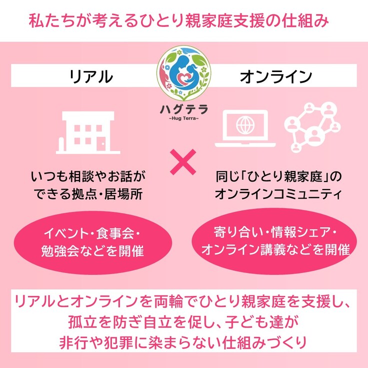 ハグテラは、ひとり親家庭の「孤独の連鎖」を断ち切り、安心して生きられる社会を創るためのコミュニティです。