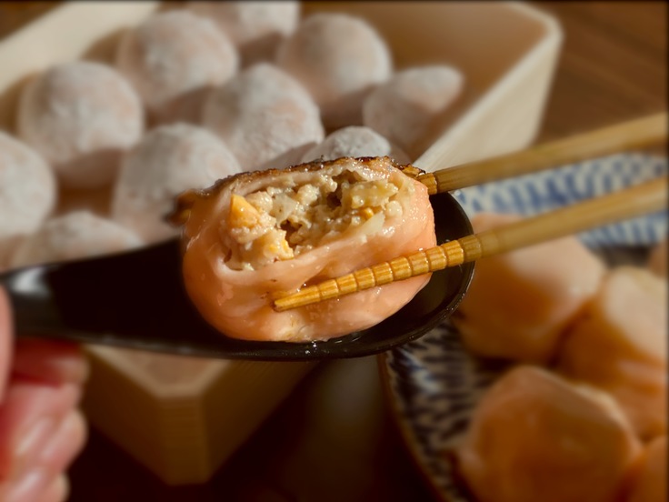 思わず、「コレ餃子なの?」と思ってしまう、このまん丸形は、じつは、青森の郷土料理「しどぎもち」をインスパイアした物です。