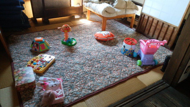 ※会場の隅に作ったキッズルーム。おもちゃは自宅にあるものを持ってきています。