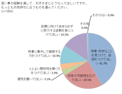 保護者の4割が、習い事を通して「得意・好きなことを見つけて、自信をつけてほしい」